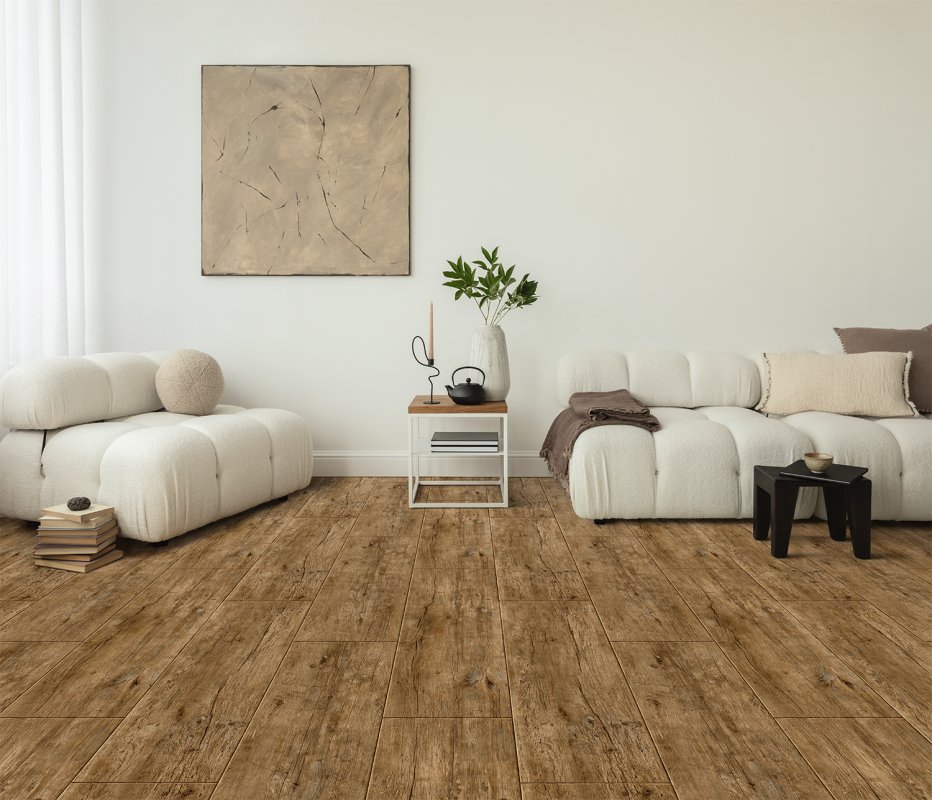 Дизайн линолеума Juteks Nelson ANDANTE 4 представляет собой широкую массивную доску дуба, что сделает ваш интерьер более сдержанным и спокойным. Коричневый оттенок линолеума легко сочетается с многими другими деталями интерьера.